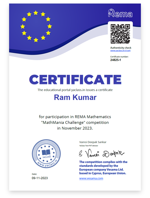 All competiton participants will get certificate that proves their participation and improvment in math skills.